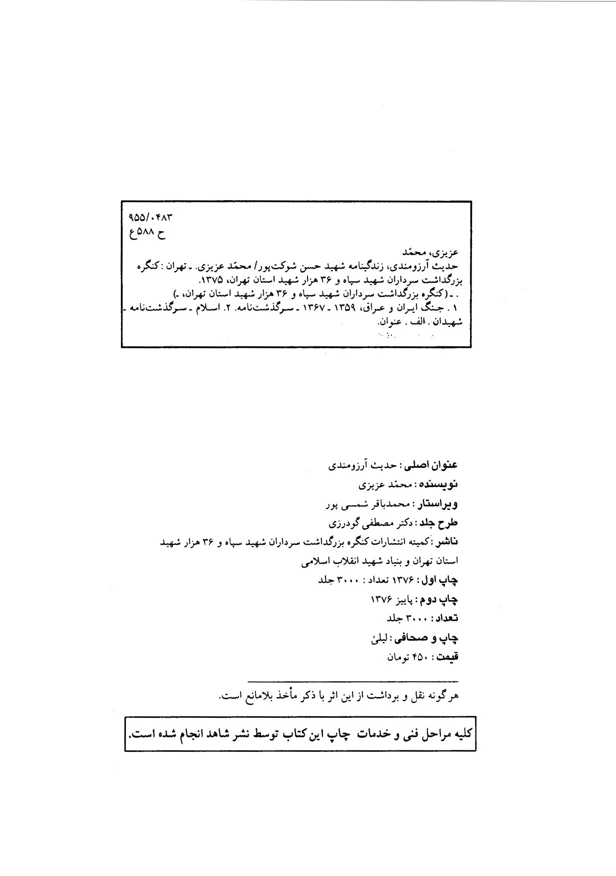 کميته انتشارات کنگره بزرگداشت سرداران شهيد سپاه و 36 هزار شهيد استان تهران و بنياد شهيد انقلاب اسلام