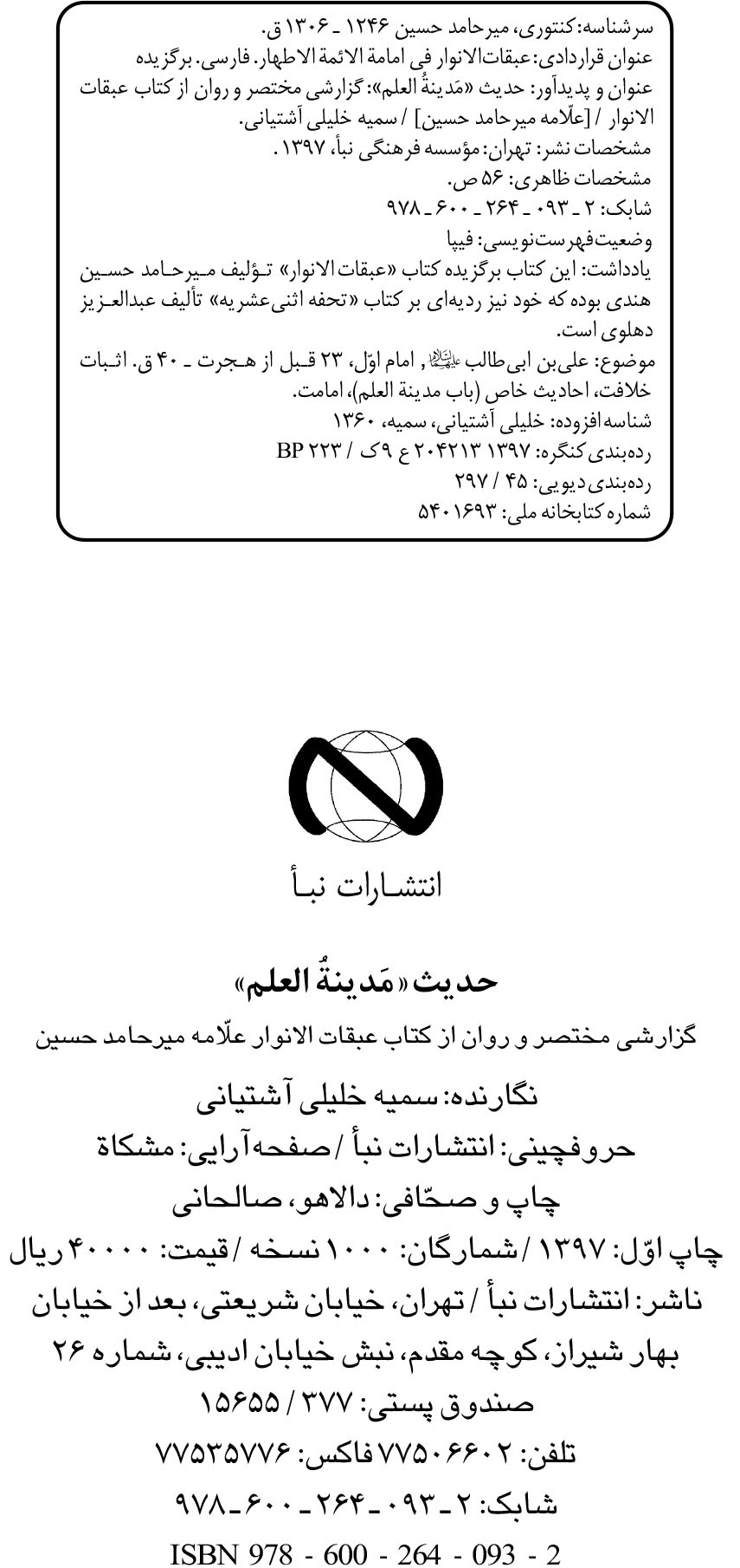 🔖 book_keywords : دانلود فایل pdf حدیث مدینه العلم نوشته سمیه خلیلی آشتیانی