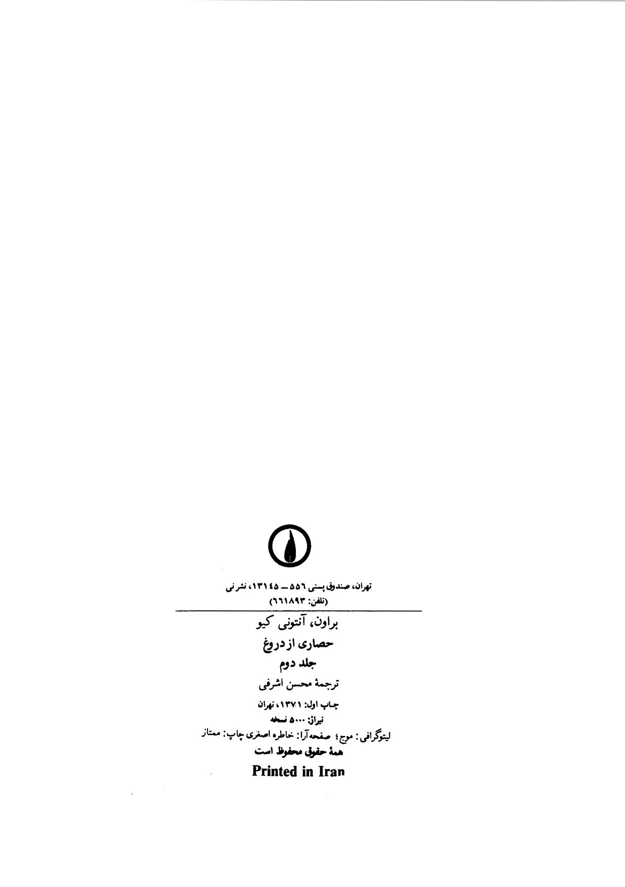 🔖 book_keywords : دانلود فایل pdf حصاری از دروغ جلد دوم نوشته آنتونی کیو براون ترجمه محسن اشرفی