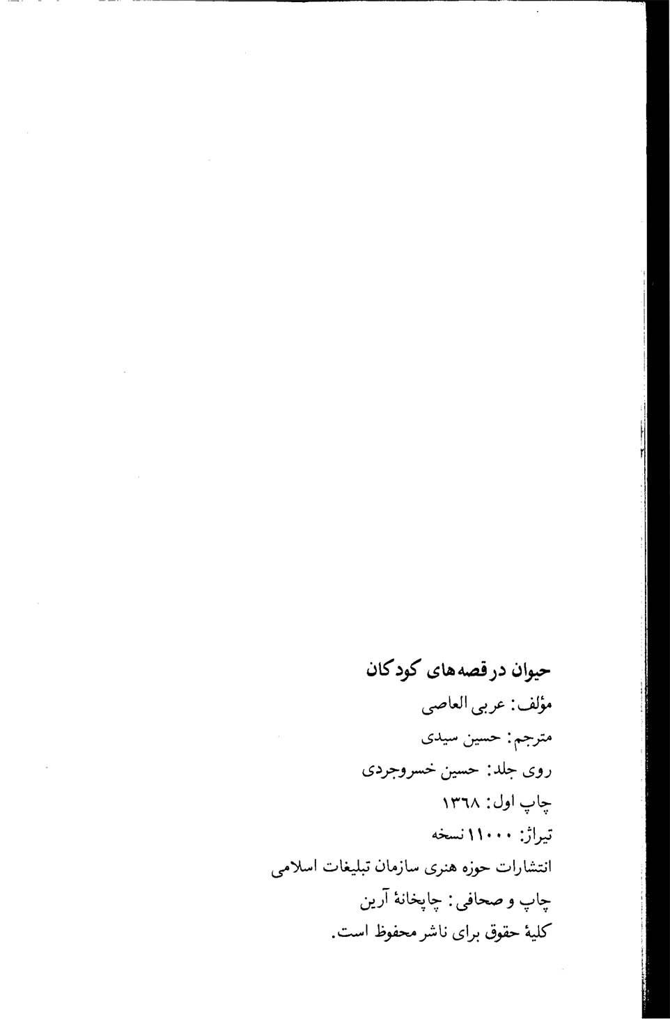 🔖 book_keywords : دانلود فایل pdf حیوان در قصههای کودکان نوشته عربی العاصی ترجمه سیدحسین سیدی