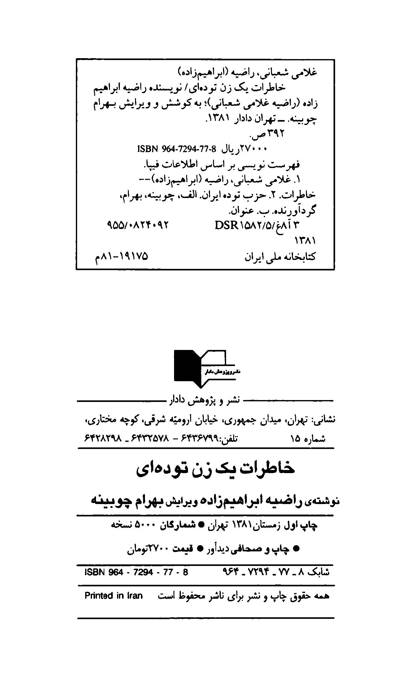 🔖 book_keywords : دانلود فایل pdf خاطرات یک زن تودهای نوشته راضیه ابراهیمزاده