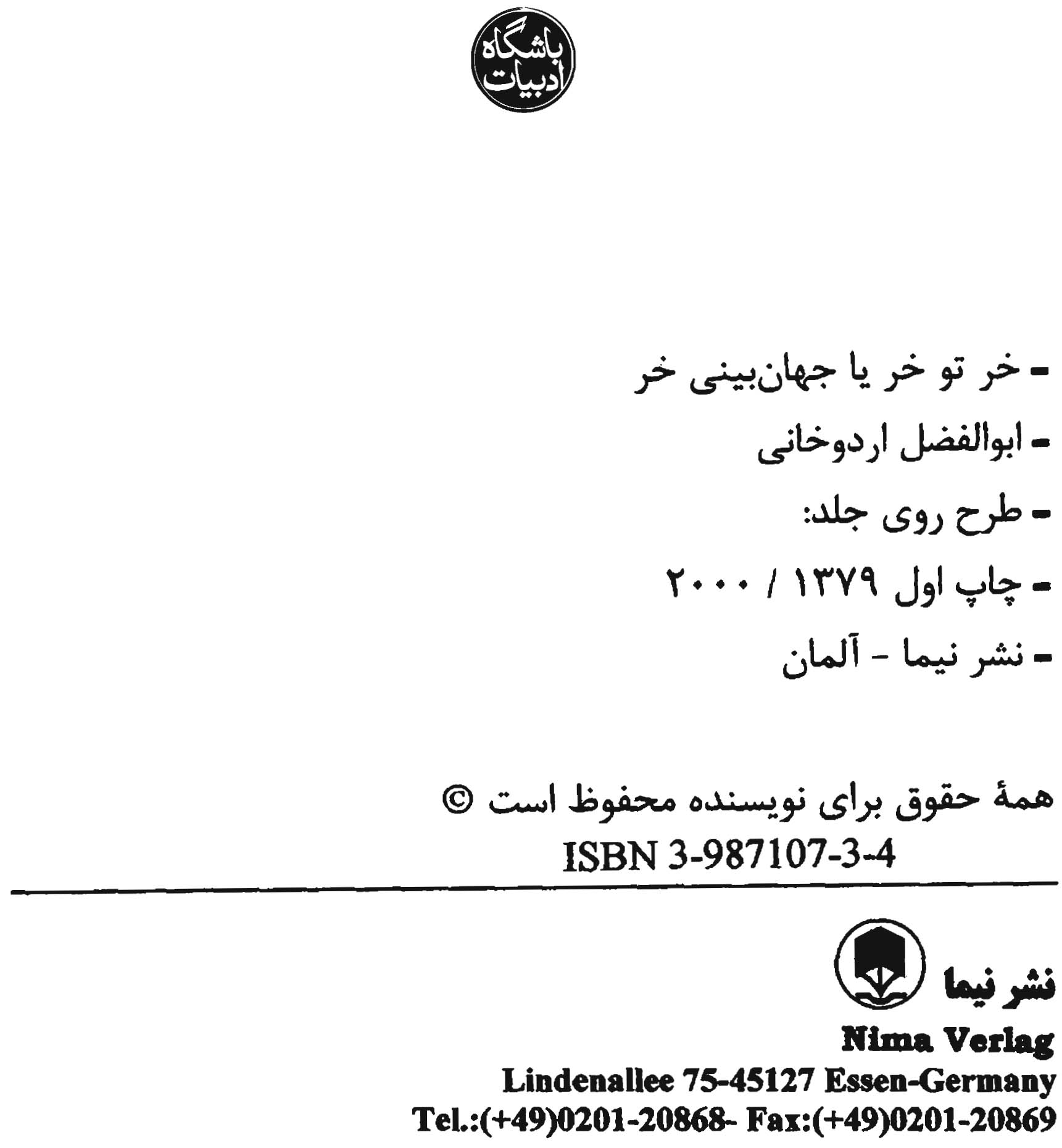 🔖 book_keywords : دانلود فایل pdf خر تو خر یا جهان‌بینی خر نوشته ابوالفضل اردوخانی