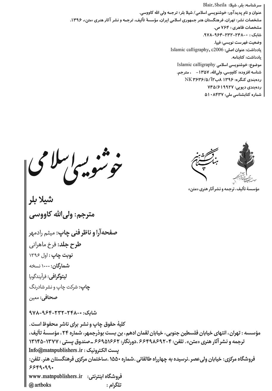 🔖 book_keywords : دانلود فایل pdf خوشنویسی اسلامی نوشته شیلا بلر ترجمه ولی الله کاووسی