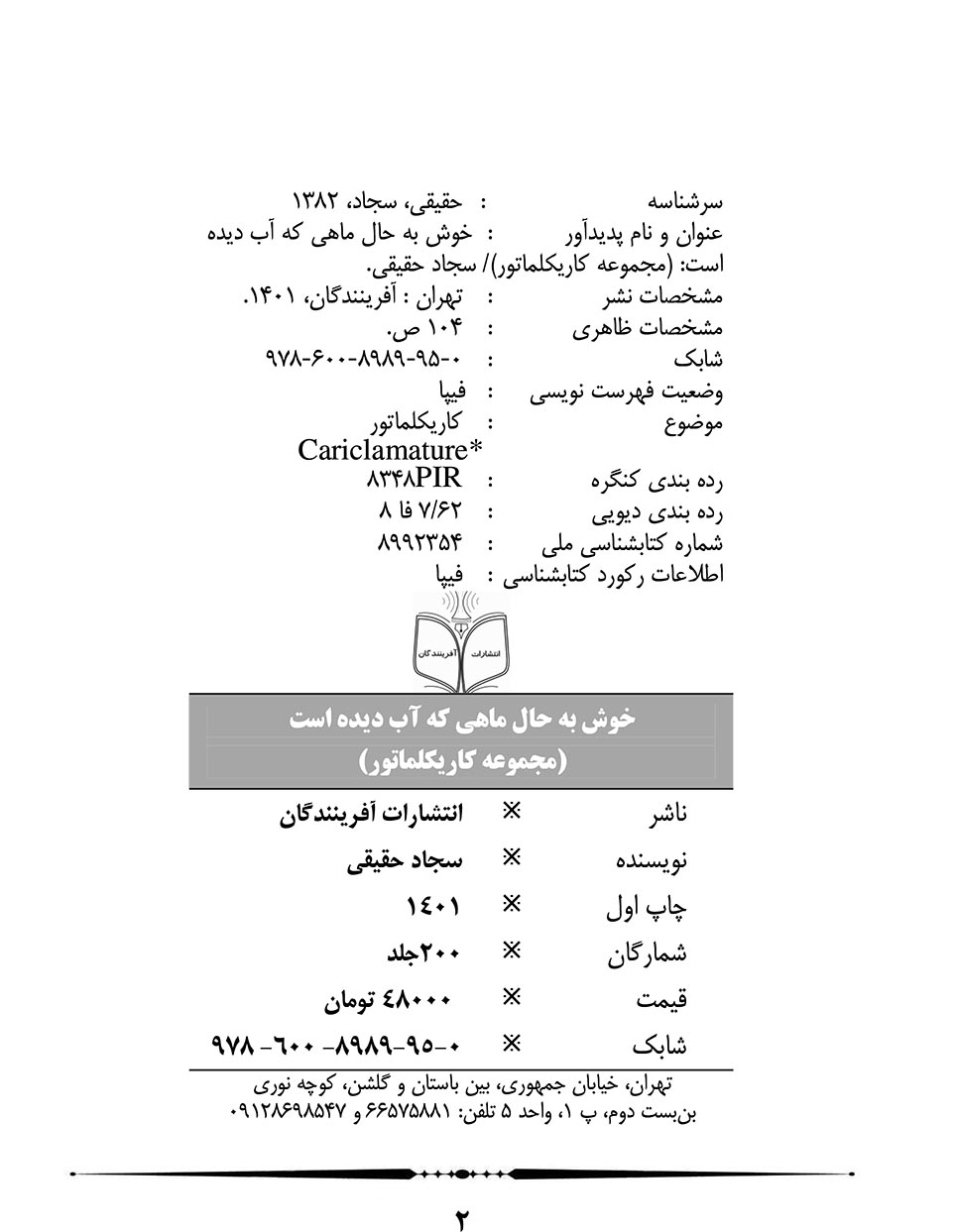 🔖 book_keywords : دانلود فایل pdf خوش به حال ماهی که آب دیده است: مجموعه کاریکلماتور نوشته سجاد حقیقی