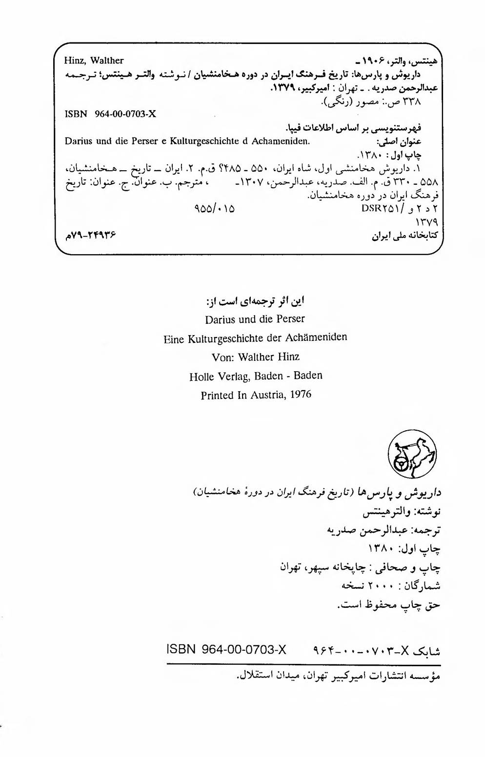 🔖 book_keywords : دانلود فایل pdf داریوش و پارسها: تاریخ فرهنگ ایران در دوره هخامنشیان نوشته والتر هینتس ترجمه عبدالرحمن صدریه