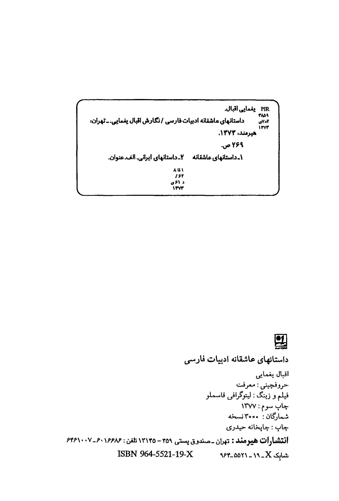 🔖 book_keywords : دانلود فایل pdf داستانهای عاشقانه ادبیات فارسی نوشته اقبال یغمایی