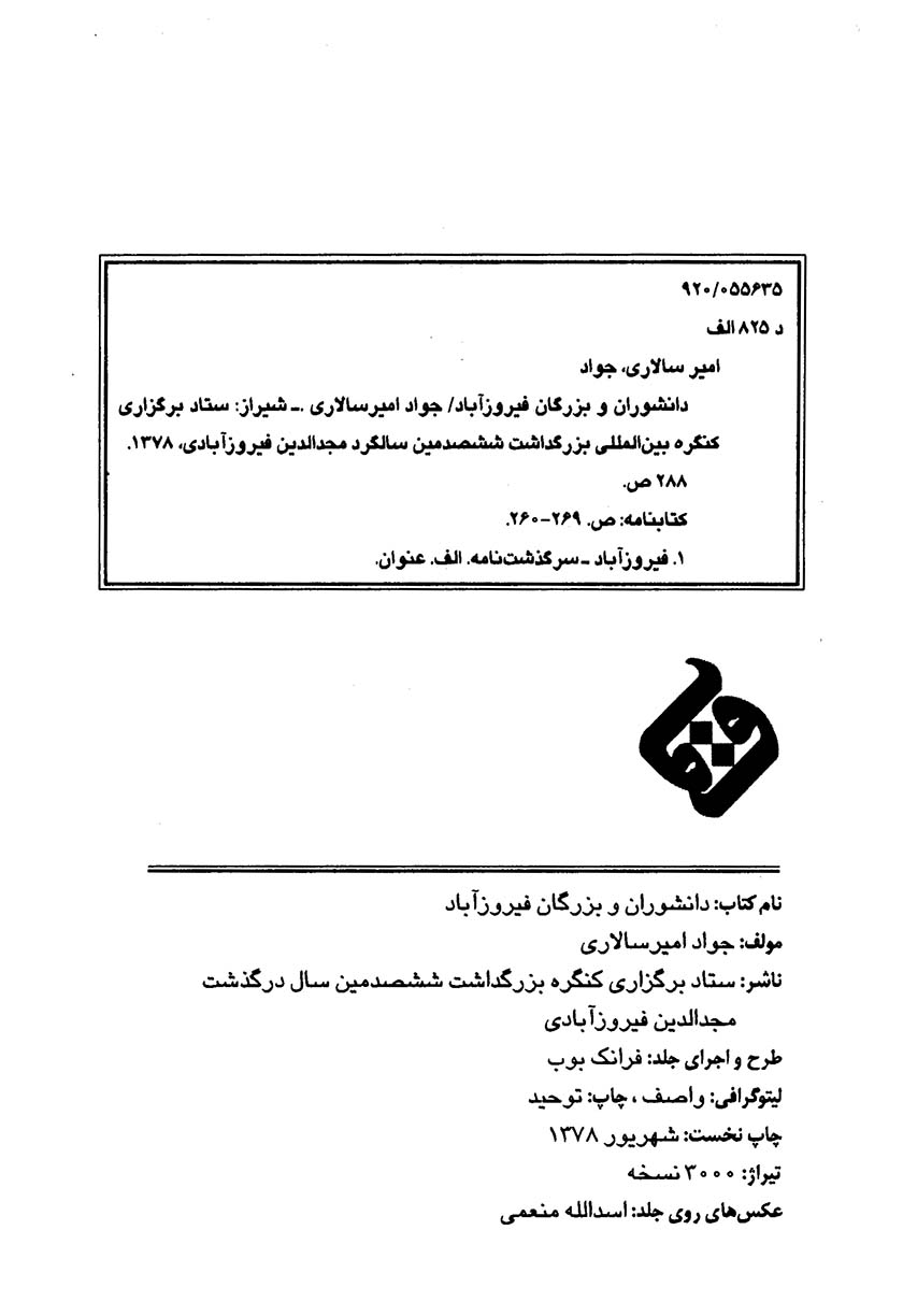 این پژوهش که بررسی اجمالی زندگی و آثار دانشوران و بزرگان فیروزآباد با رویکردی به جغرافیای تاریخی این دیار است، همزمان با برگزاری کنگره بین المللی بزرگداشت ششصدمین سال درگذشت لغوی بزرگ، مجدالدین فیروزآبادی صاحب “قاموس المحیط” منتشر شده است.