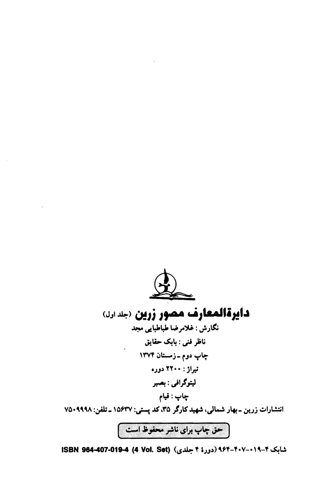 دایره المعارف مصور زرین – جلد اول
