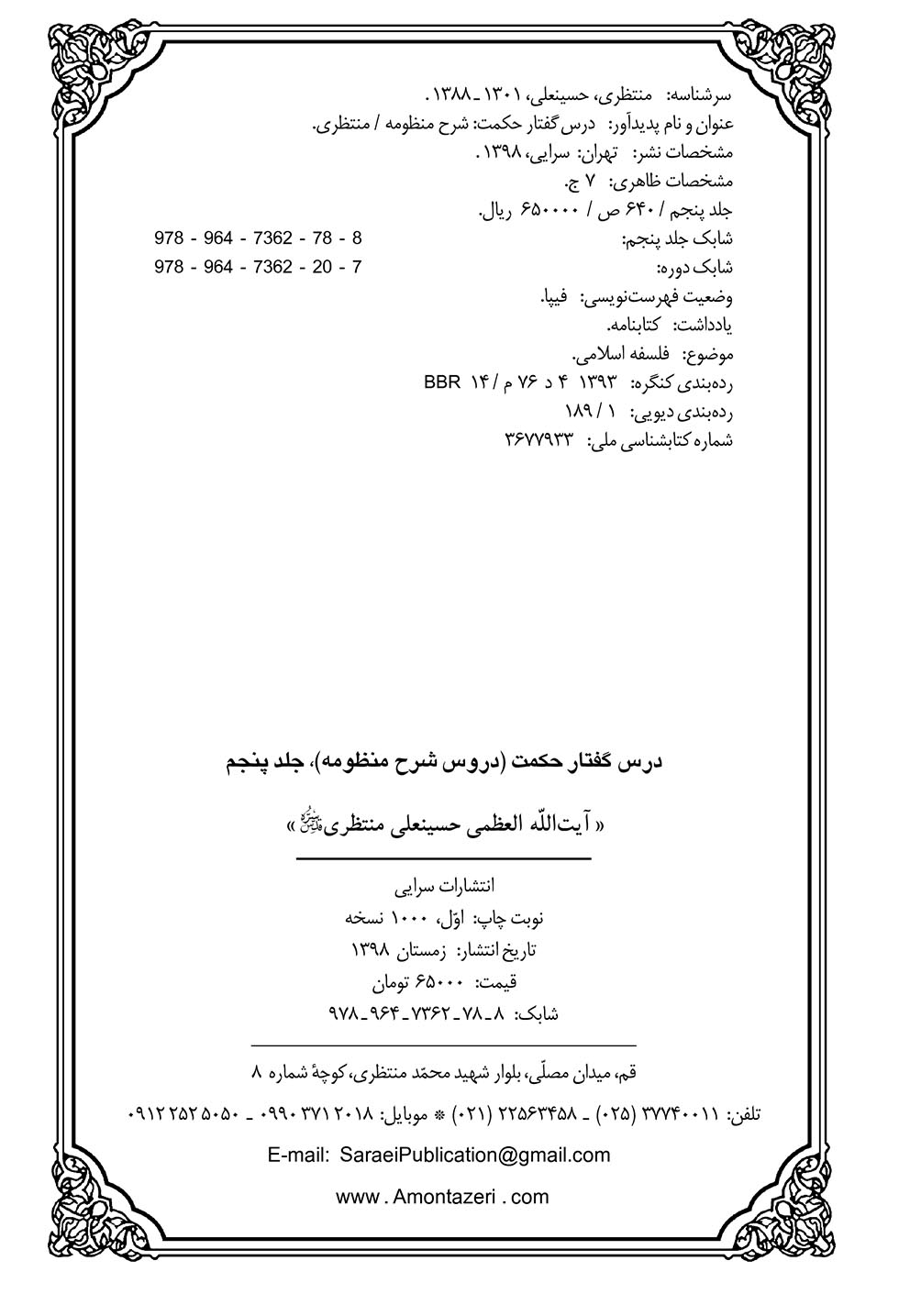 🔖 book_keywords : دانلود فایل pdf درسگفتار حکمت جلد پنجم نوشته حسینعلی منتظری
