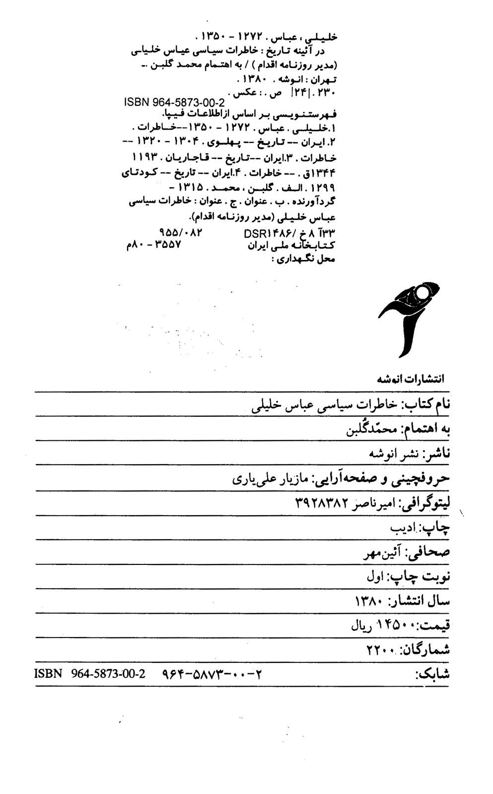 🔖 book_keywords : دانلود فایل pdf در آئینه تاریخ: خاطرات سیاسی عباس خلیلی (مدیر روزنامه اقدام) نوشته محمد گلبن