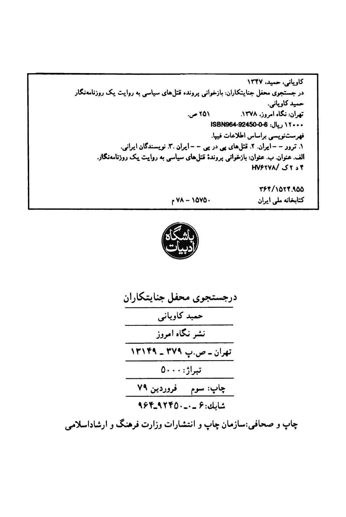 مشخصات نشر تهران‌: نگاه امروز، 1378.