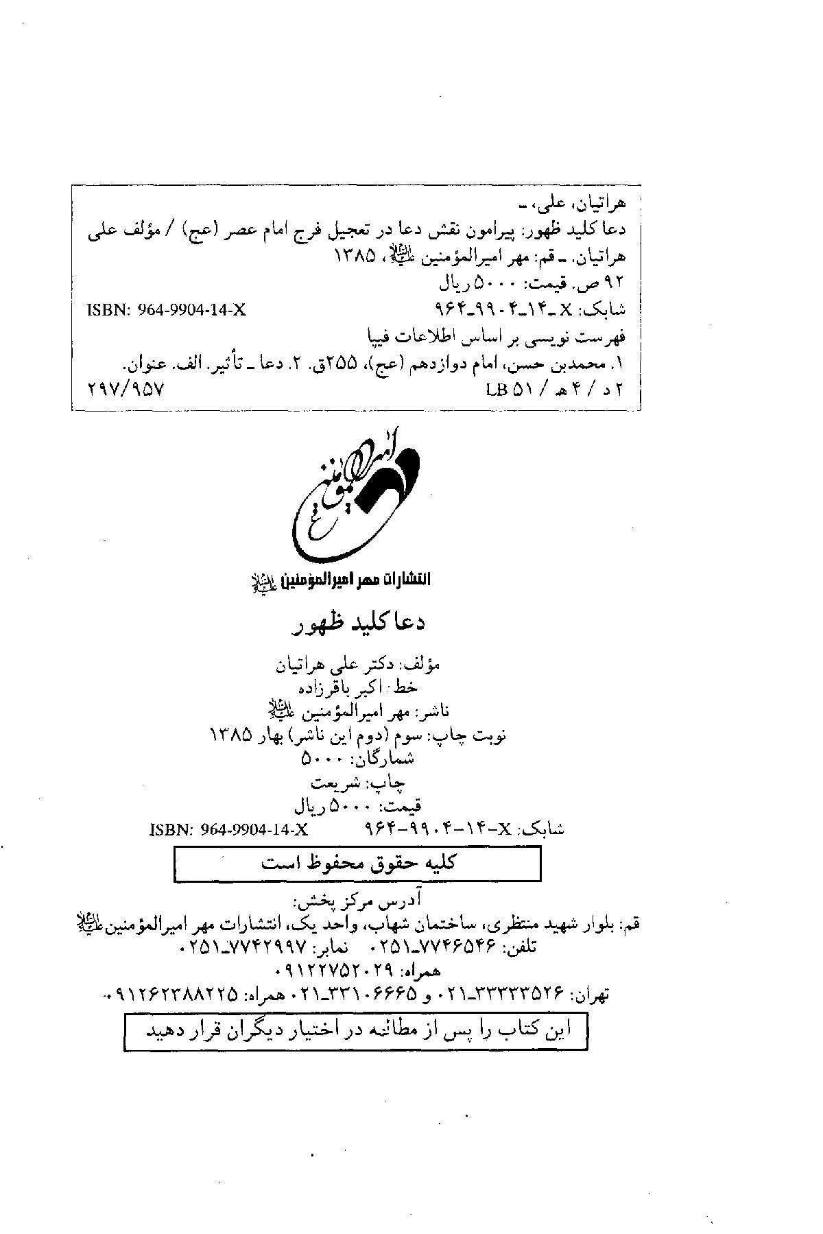 🔖 book_keywords : دانلود فایل pdf دعا کلید ظهور نوشته علی هراتیان