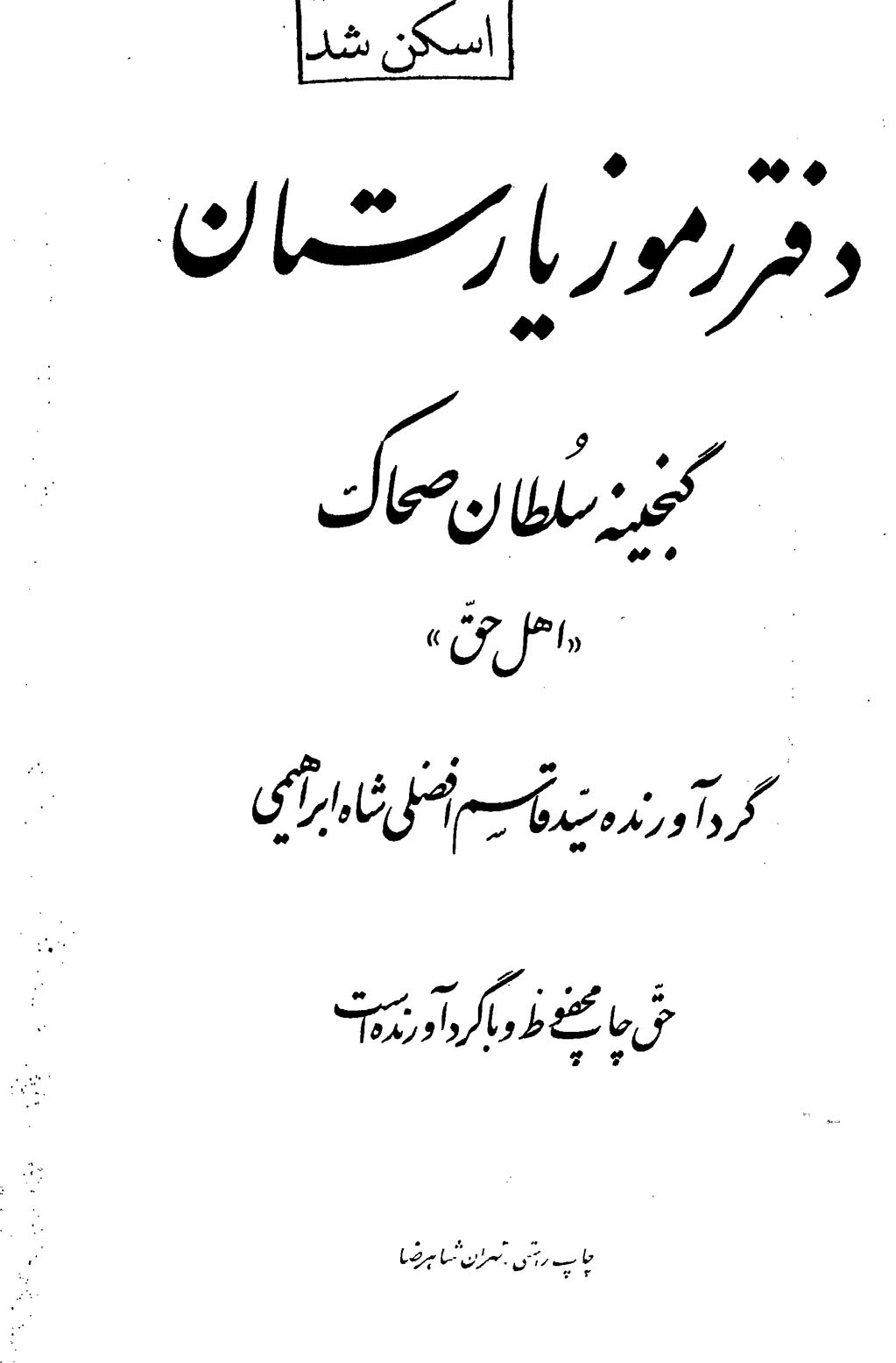 🔖 book_keywords : دانلود فایل pdf دفتر رموز یارستان (گنجینه سلطان صحاک) نوشته گردآورنده: سیدقاسم افضلی شاه ابراهیمی