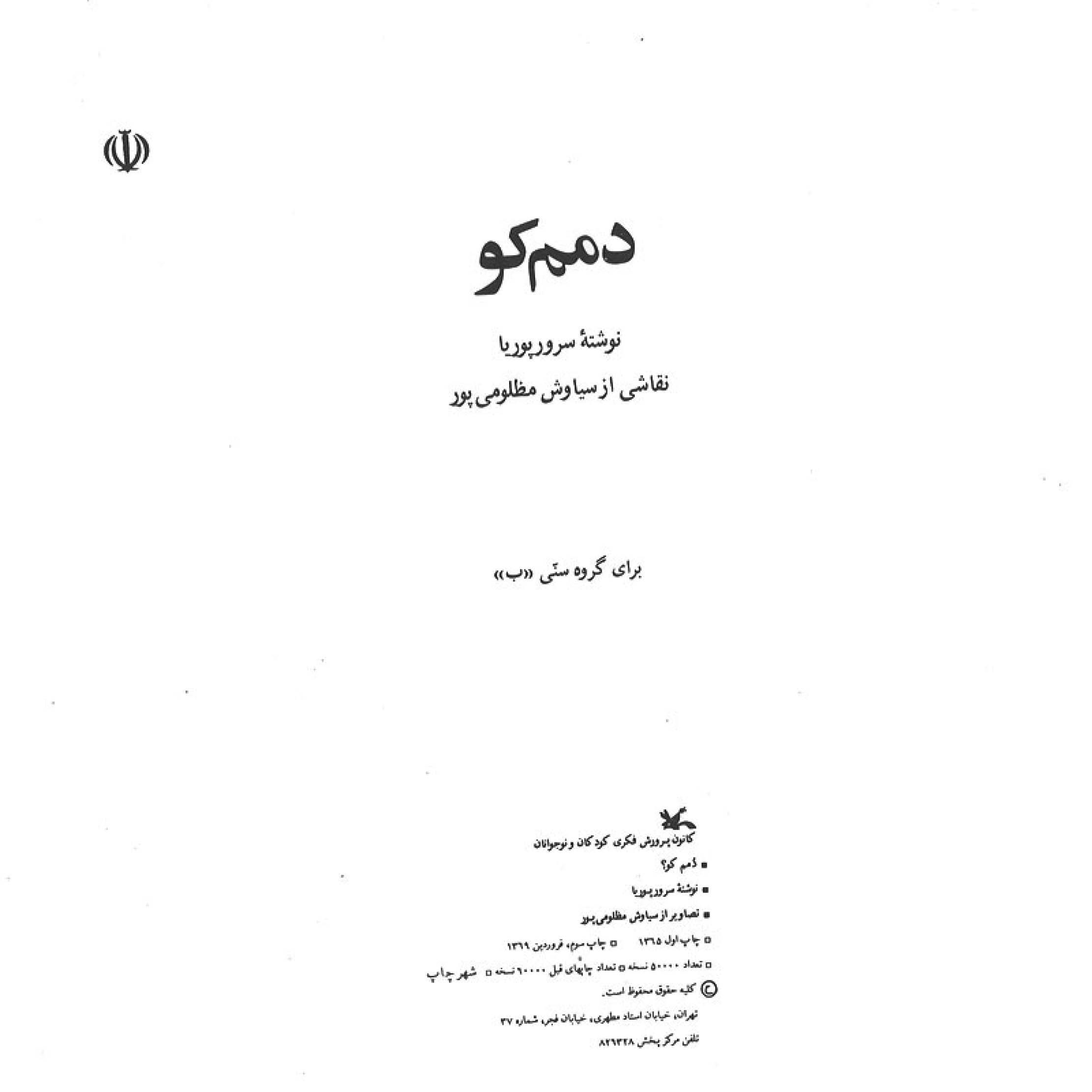 🔖 book_keywords : دانلود فایل pdf دمم کو نوشته سرور پوریا ترجمه نقاشی : سیاوش مظلومی پور