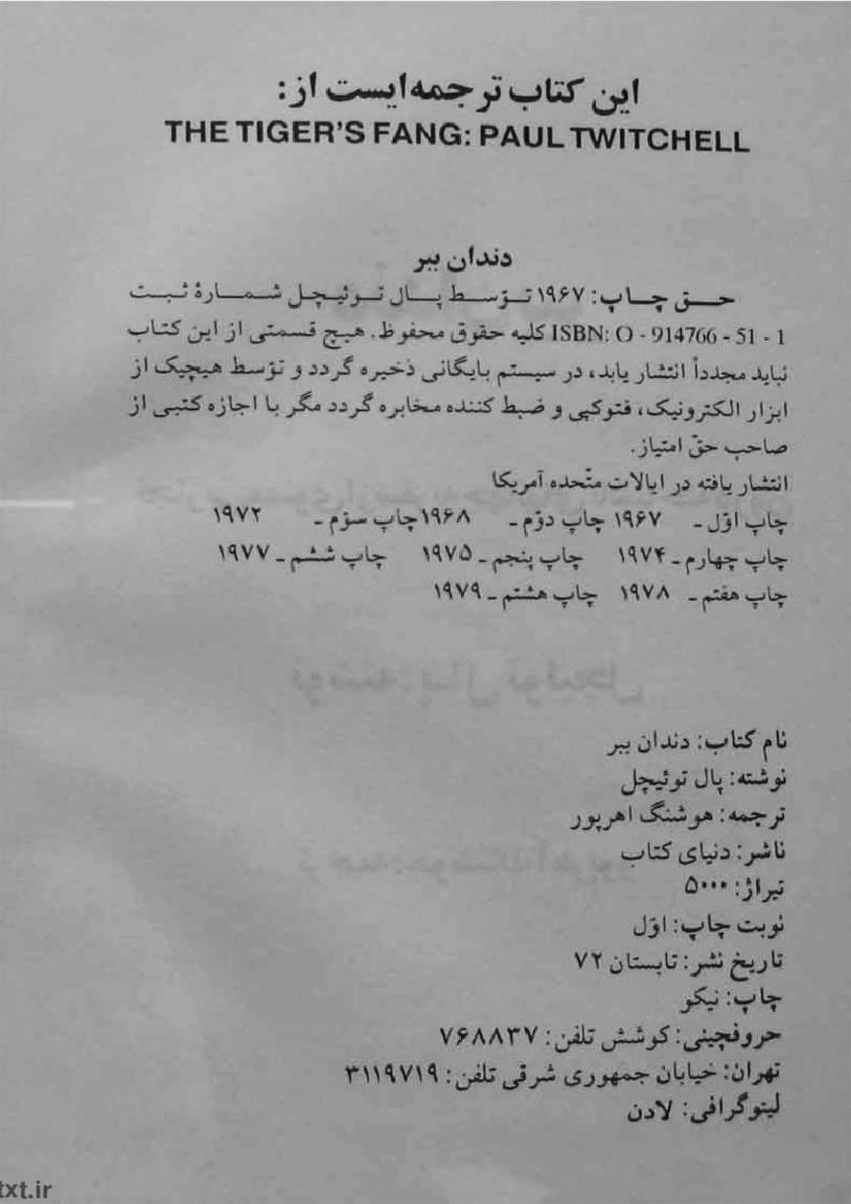 🔖 book_keywords : دانلود فایل pdf دندان ببر نوشته پال توئیچل ترجمه هوشنگ اهرپور