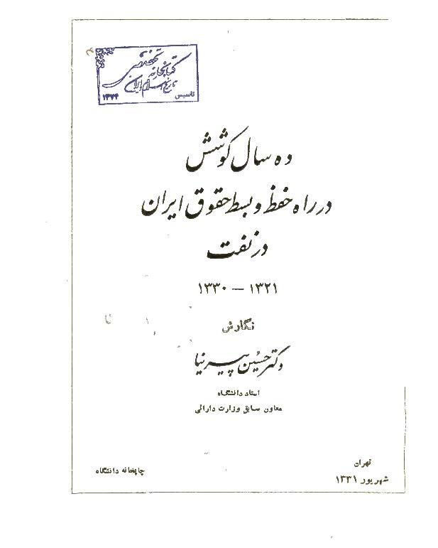 🔖 book_keywords : دانلود فایل pdf ده سال کوشش در راه حفظ و بسط حقوق ایران در نفت ۱۳۲۱ – ۱۳۳۰ نوشته حسین پیرنیا