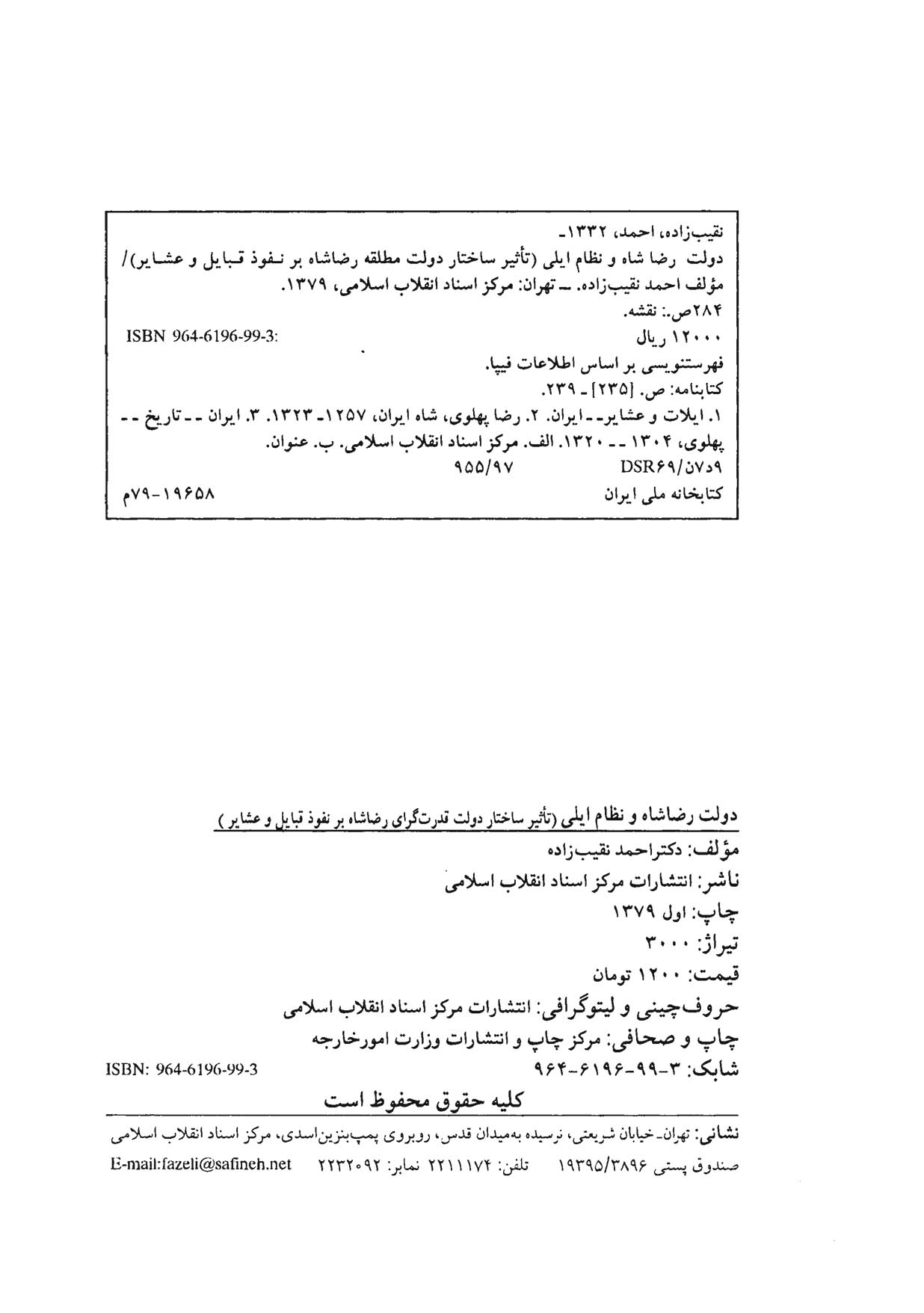 🔖 book_keywords : دانلود فایل pdf دولت رضا شاه و نظام ایلی نوشته احمد نقیب زاده
