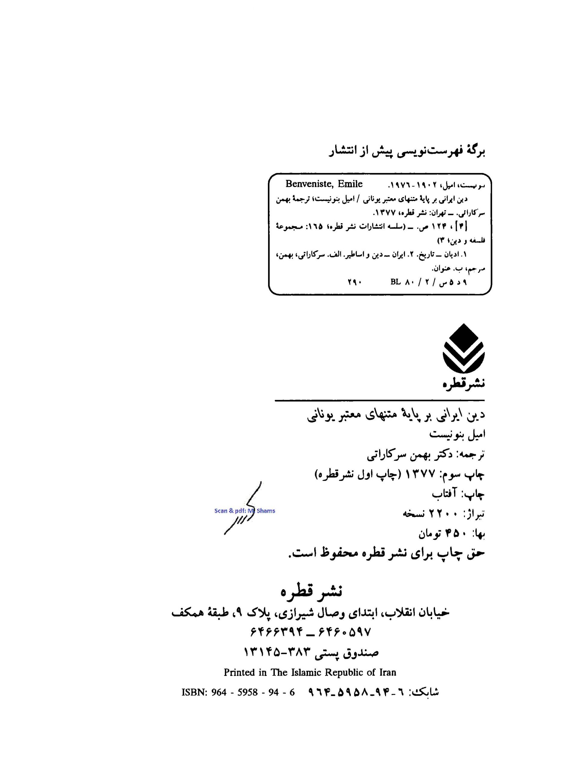 🔖 book_keywords : دانلود فایل pdf دین ایرانی: بر پایه متنهای معتبر یونانی نوشته امیل بنونیست ترجمه بهمن سرکاراتی