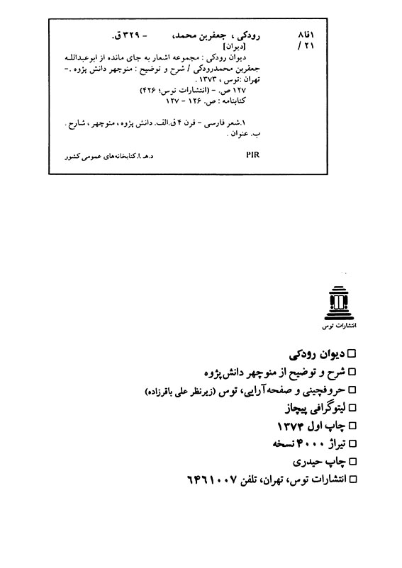 اولین نفری باشید که دیدگاهی را ارسال می کنید برای “دیوان رودکی”
