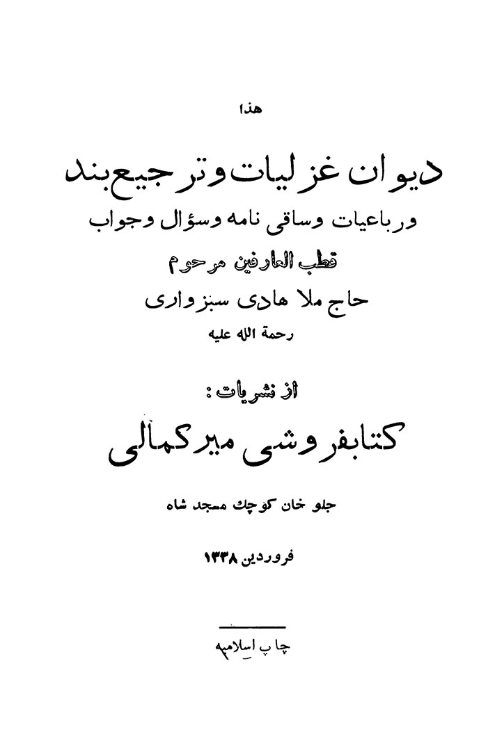 دیوان غزلیات و ترجیع بند حاج ملاهادی سبزواری
