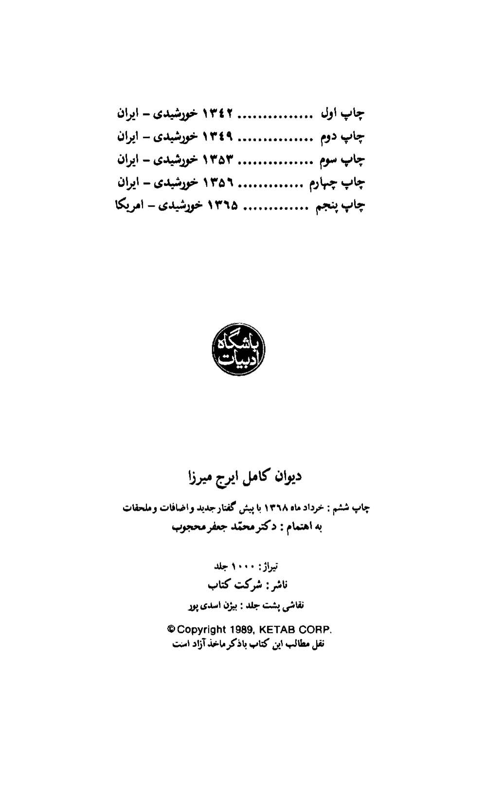 🔖 book_keywords : دانلود فایل pdf دیوان کامل ایرج میرزا : با اضافات و ملحقات و مقدمۀ جدید نوشته ایرج میرزا ترجمه به اهتمام محمدجعفر محجوب