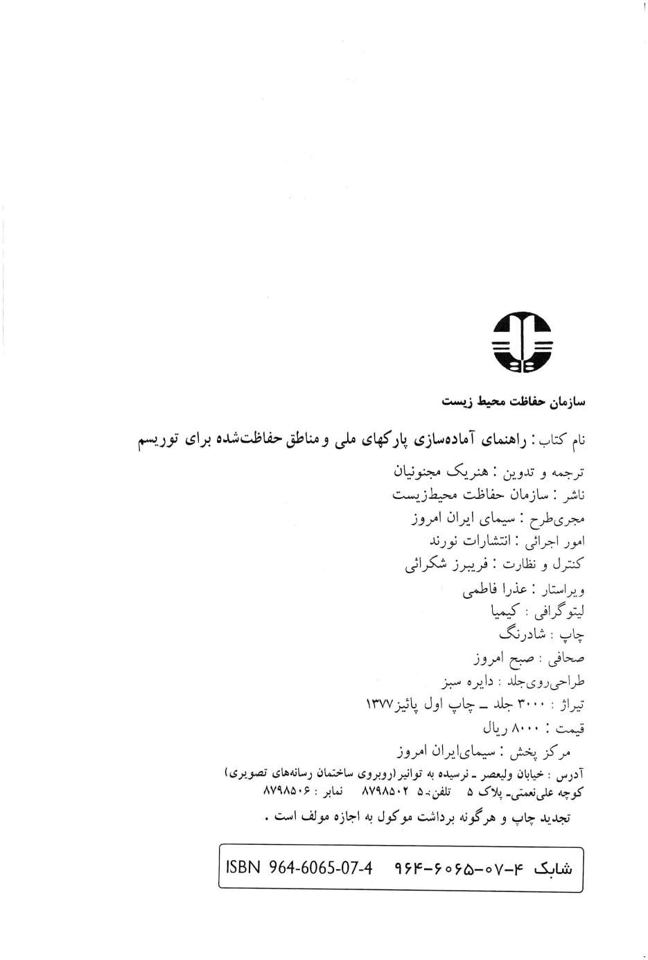 🔖 book_keywords : دانلود فایل pdf راهنمای آماده سازی پارکهای ملی و مناطق حفاظت شده برای توریسم نوشته هنریک مجنونیان
