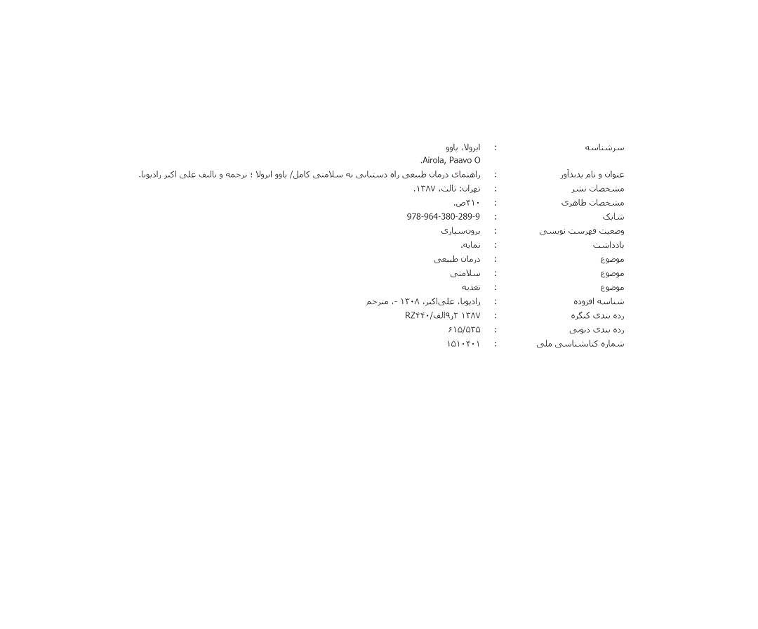 🔖 book_keywords : دانلود فایل pdf راهنمای درمان طبیعی نوشته پاو وایرولا ترجمه علیاکبر رادپویا