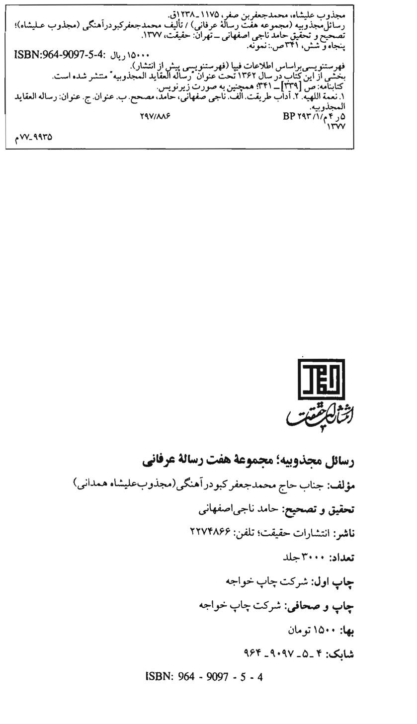 🔖 book_keywords : دانلود فایل pdf رسائل مجذوبیه نوشته محمدجعفربنصفر مجذوبعلیشاه ترجمه حامد ناجیاصفهانی