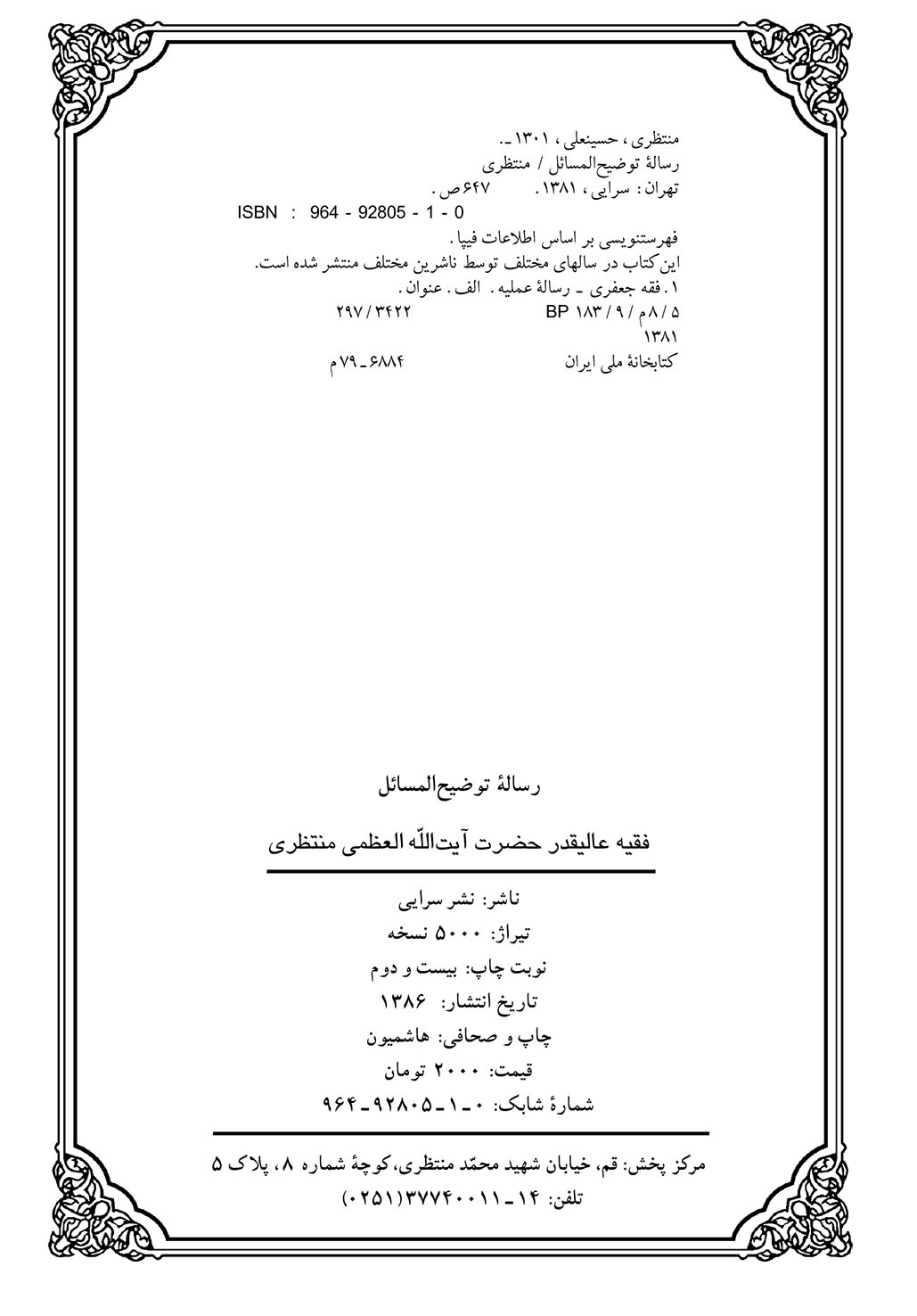 🔖 book_keywords : دانلود فایل pdf رساله توضیح‌المسائل نوشته حسینعلی منتظری