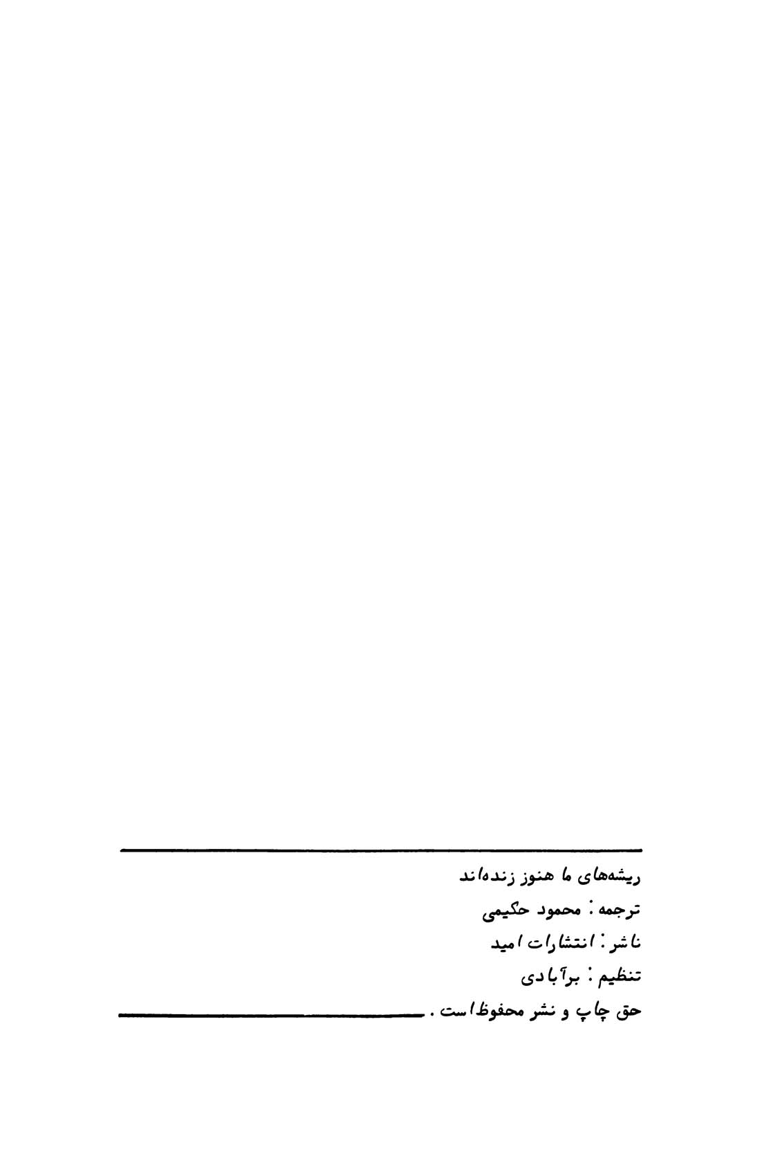 🔖 book_keywords : دانلود فایل pdf ریشههای ما هنوز زندهاند نوشته محمود حکیمی