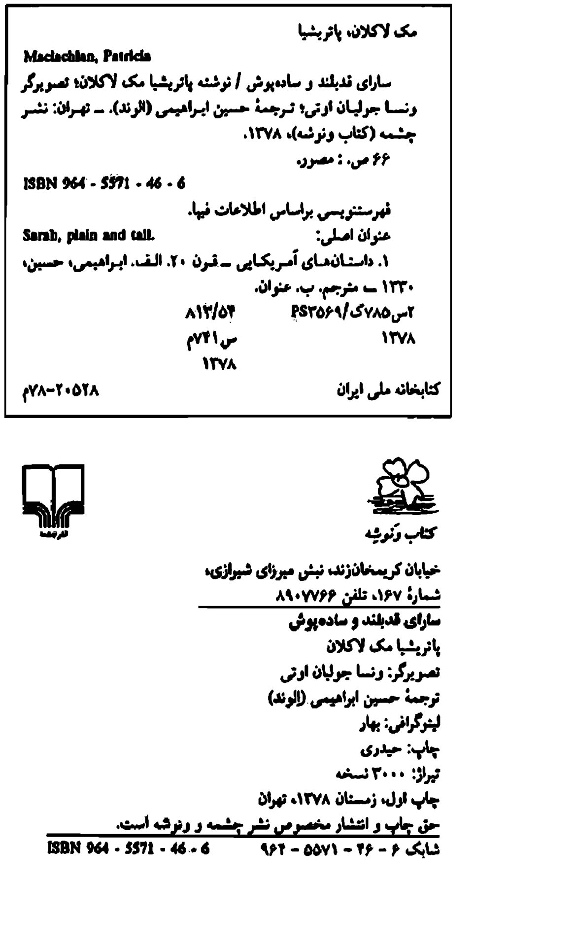 🔖 book_keywords : دانلود فایل pdf سارای قد بلند و ساده پوش نوشته پاتریشیا مک لاکلان ترجمه حسین ابراهیمی
