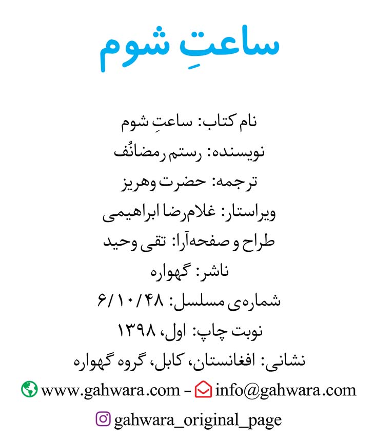 🔖 book_keywords : دانلود فایل pdf ساعتِ شوم نوشته رستم رمضانُف ترجمه مترجم: حضرت وهریز