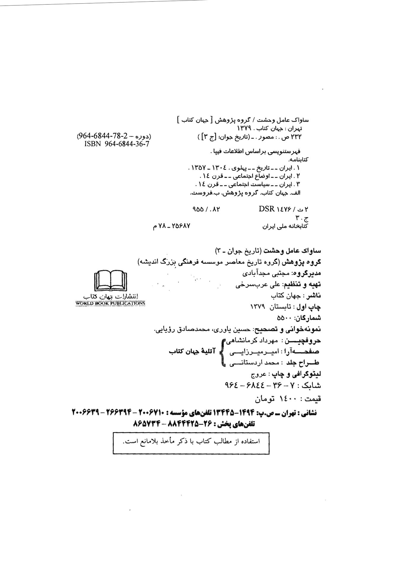 🔖 book_keywords : دانلود فایل pdf ساواک عامل وحشت همراه با آلبوم عکس ها نوشته تهیه و تنظیم: گروه پژوهش (گروه تاریخ معاصر موسسه فرهنگی، هنری بزرگ اندیشه) [جهان کتاب]