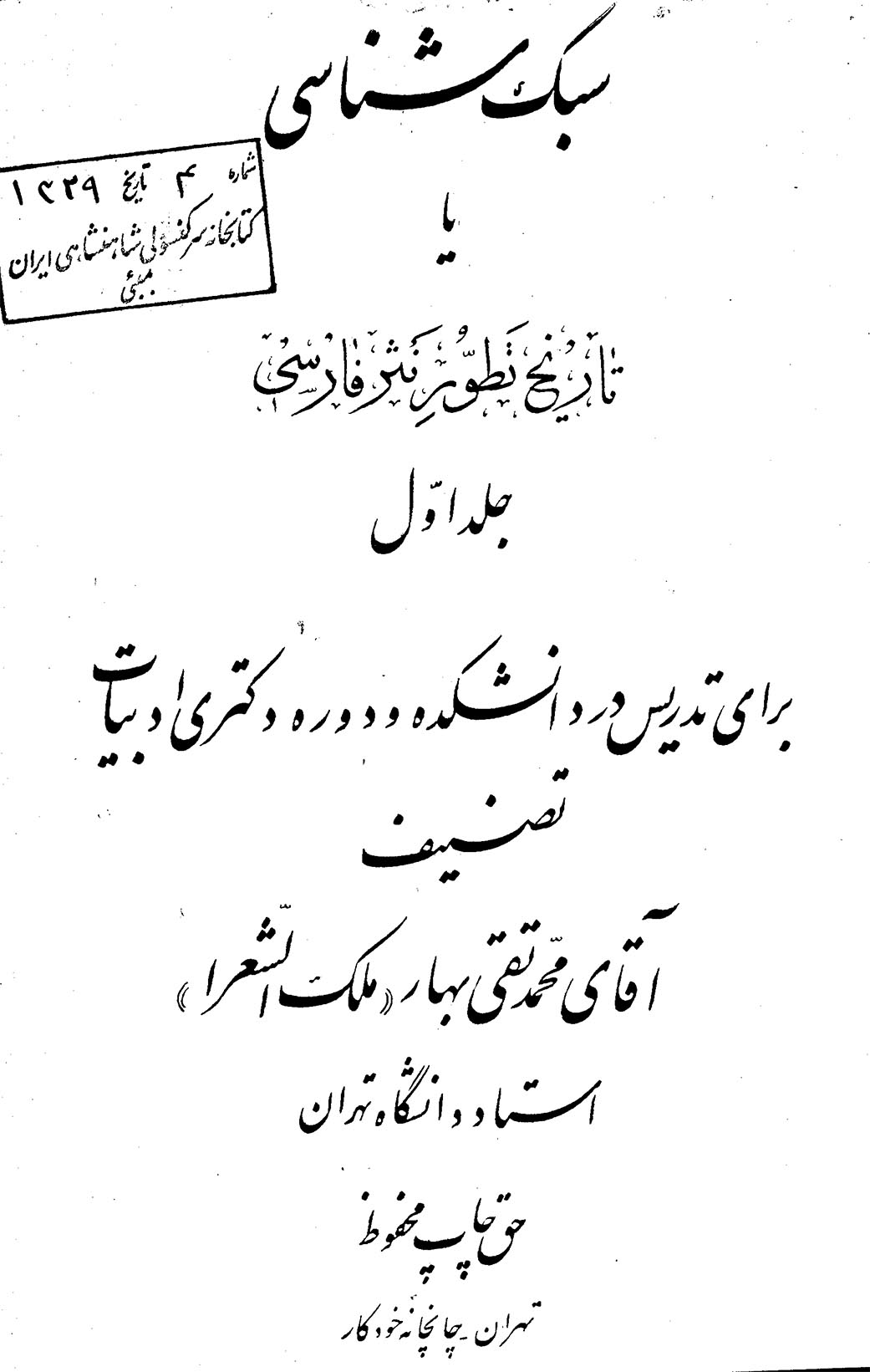 🔖 book_keywords : دانلود فایل pdf سبک‌شناسی، یا، تاریخ تطور نثر فارسی (جلد ۱) نوشته محمدتقی بهار