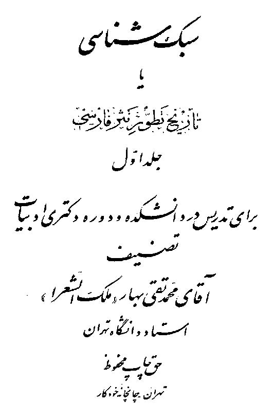 🔖 book_keywords : دانلود فایل pdf سبک شناسی (تاریخ تطور نثر فارسی) نوشته محمدتقی بهار (ملک الشعراء)
