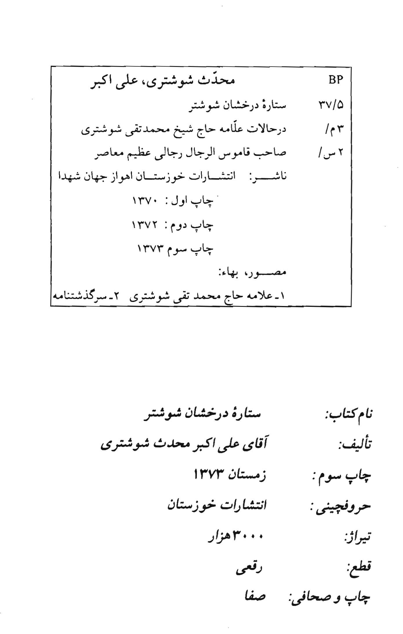 🔖 book_keywords : دانلود فایل pdf ستاره درخشان شوشتر نوشته علی‌اکبر محدث‌شوشتری