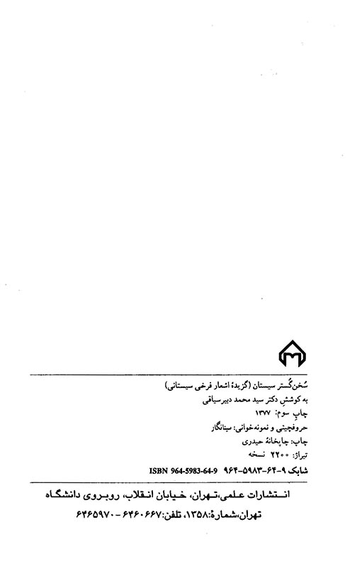 🔖 book_keywords : دانلود فایل pdf سخن گستر سیستان: گزیده اشعار فرخی سیستانی نوشته فرخی سیستانی ترجمه به کوشش: سیدمحمد دبیرسیاقی