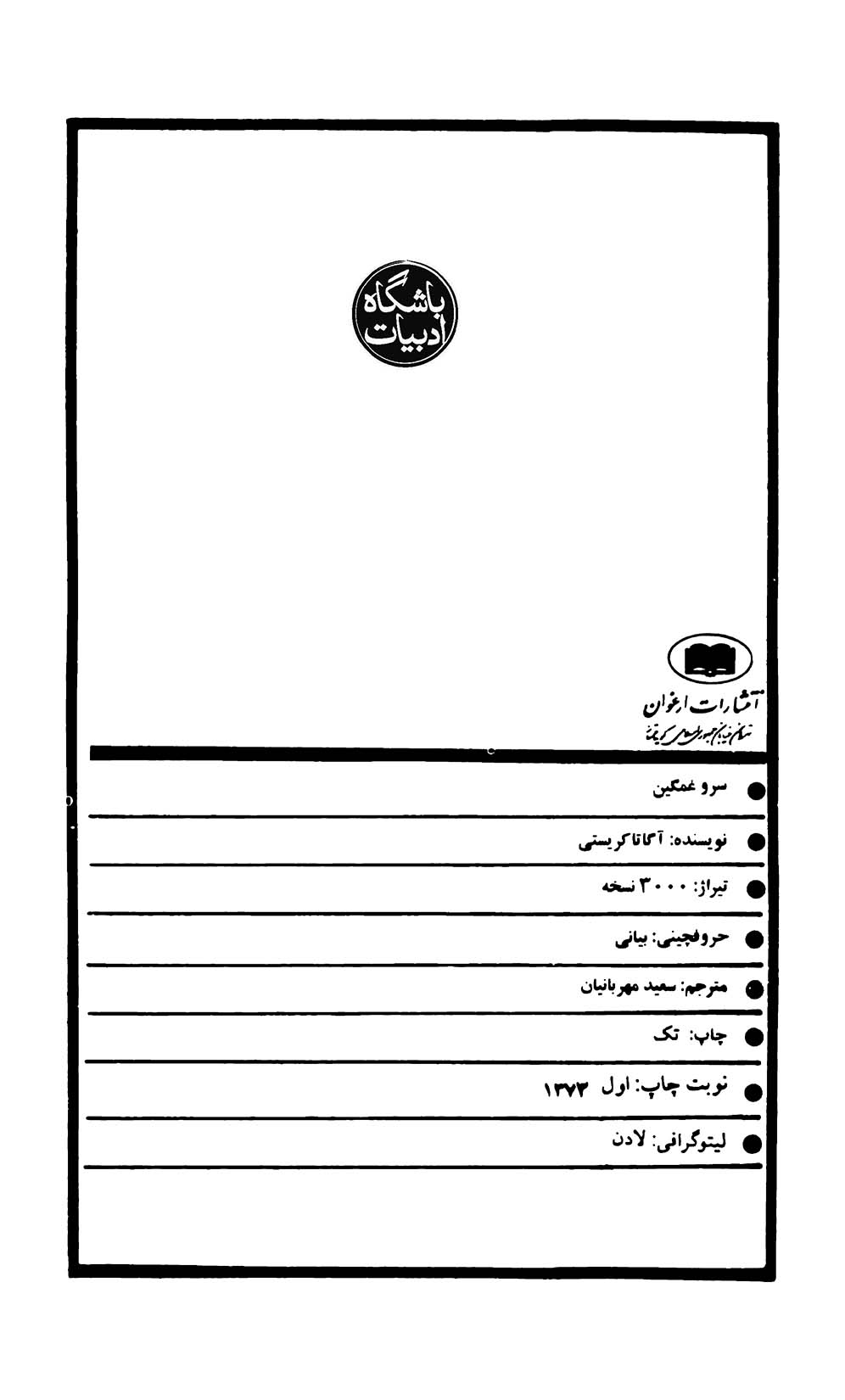 🔖 book_keywords : دانلود فایل pdf سرو غمگین نوشته آگاتا کریستی ترجمه سعید مهربانیان ادبیات انگلیس ادبیات داستانی انگلیس داستانهای انگلیسی رمان انگلیسی رمان خارجی نویسندگان انگلیسی