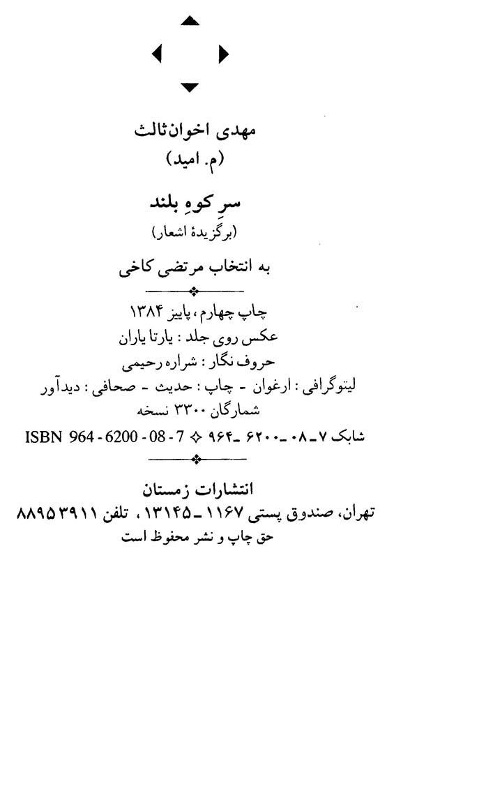 🔖 book_keywords : دانلود فایل pdf سر کوه بلند: برگزیده اشعار مهدی اخوان ثالث نوشته مهدی اخوان ثالث ترجمه به انتخاب: مرتضی کاخی