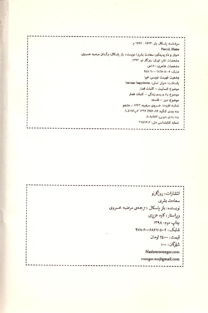 🔖 book_keywords : دانلود فایل pdf سعادت بشری نوشته بلز پاسکال ترجمه مرضیه خسروی