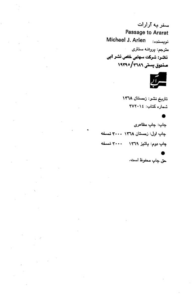 🔖 book_keywords : دانلود فایل pdf سفر به آرارات نوشته مایکل آرلن ترجمه پروانه ستاری