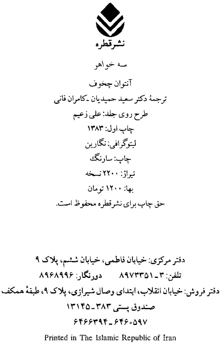 🔖 book_keywords : دانلود فایل pdf سه خواهر نوشته آنتوان چخوف ترجمه سعید حمیدیان