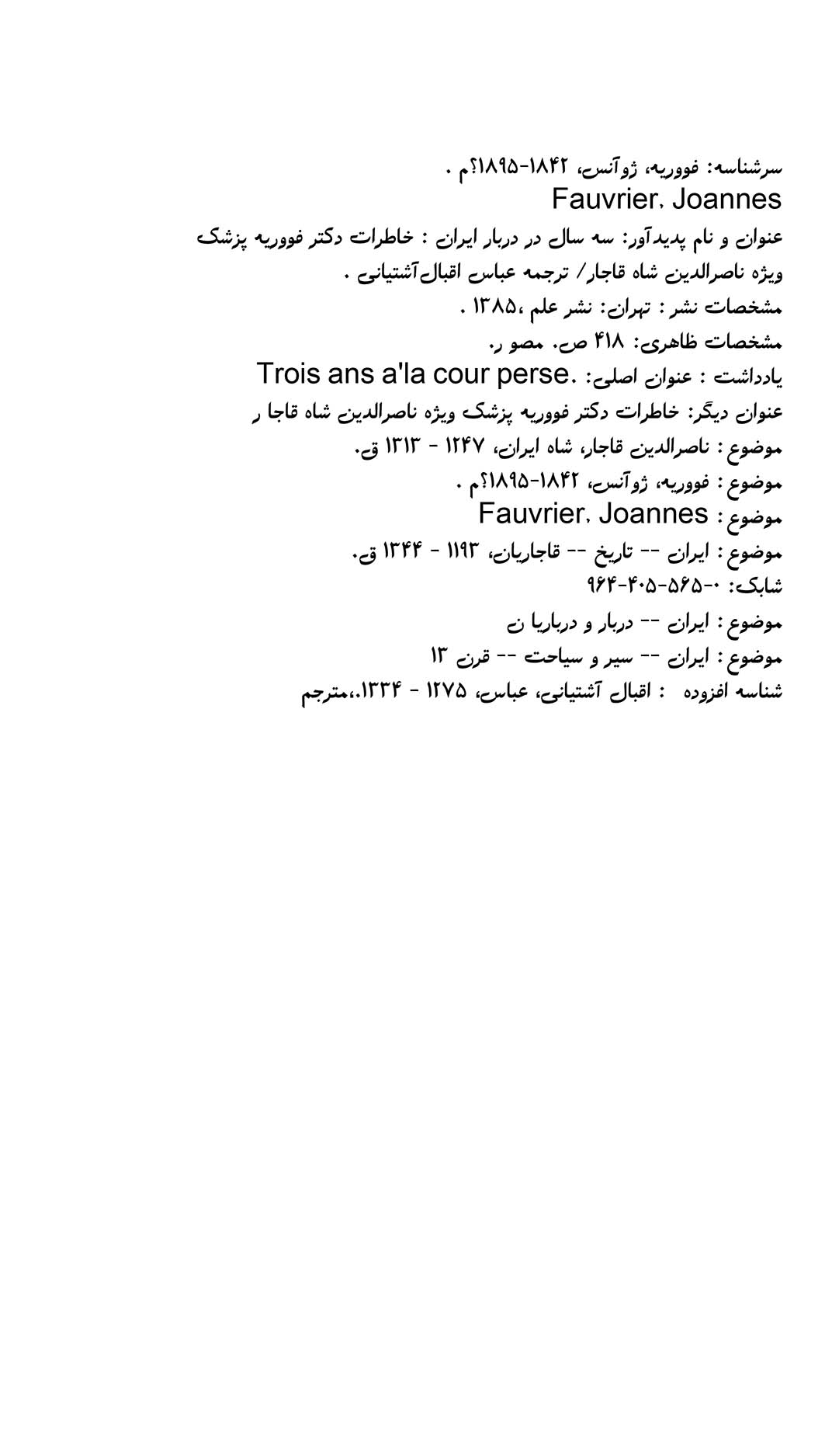 🔖 book_keywords : دانلود فایل pdf سه سال در دربار ایران نوشته ژوانس فووریه ترجمه عباس اقبال آشتیانی