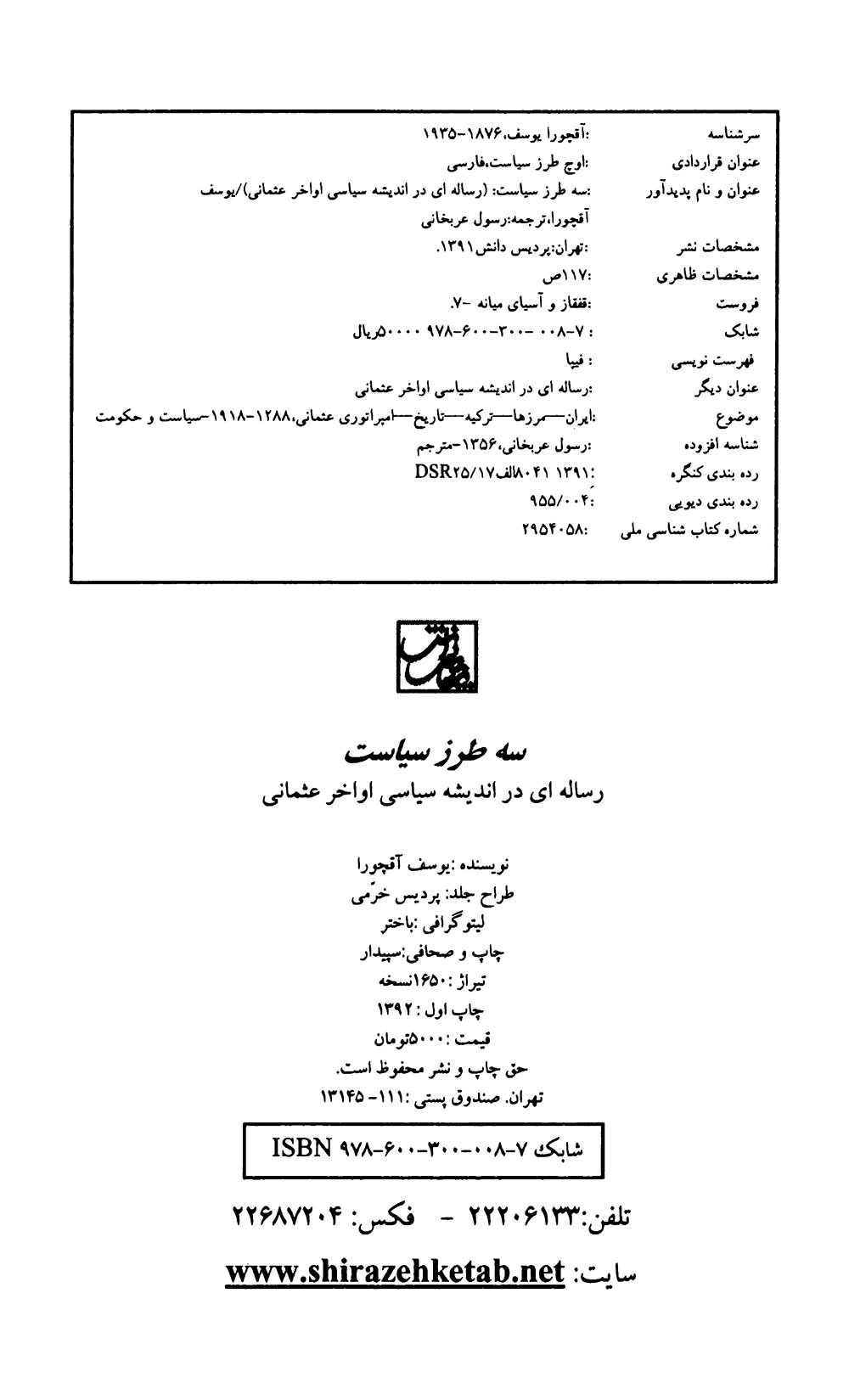 🔖 book_keywords : دانلود فایل pdf سه طرز سیاست نوشته یوسف آقچورا ترجمه رسول عربخانی