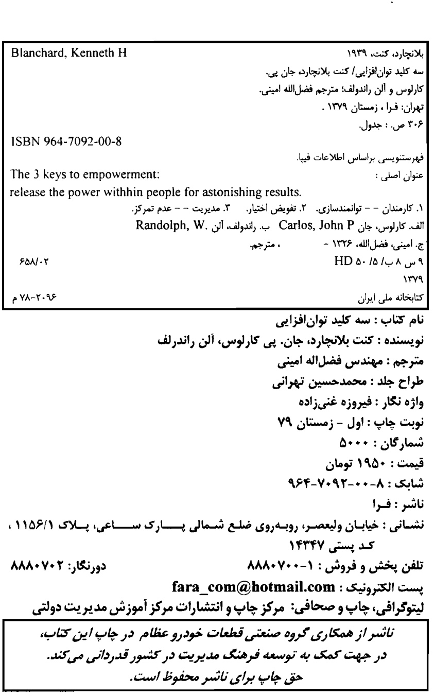 🔖 book_keywords : دانلود فایل pdf سه کلید توان افزایی نوشته کن بلانچارد ترجمه فضل الله امینی