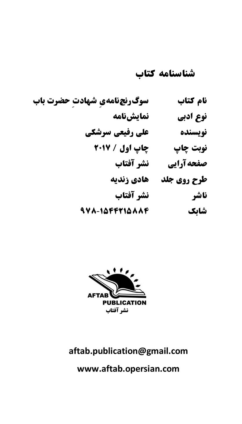 🔖 book_keywords : دانلود فایل pdf سوگ‌رنج‌نامۀ شهادت حضرت باب : نمایشنامه نوشته علی رفیعی سرشکی
