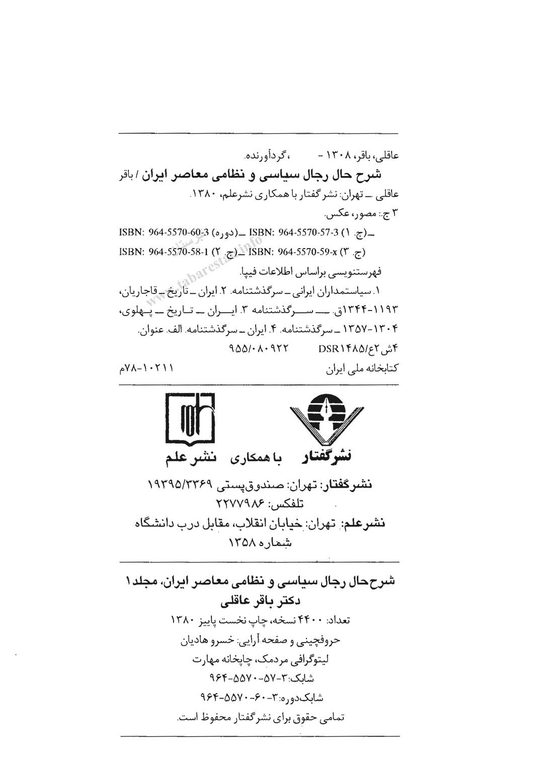 🔖 book_keywords : دانلود فایل pdf شرح حال رجال سیاسی و نظامی معاصر ایران (جلد ۱) نوشته باقر عاقلی