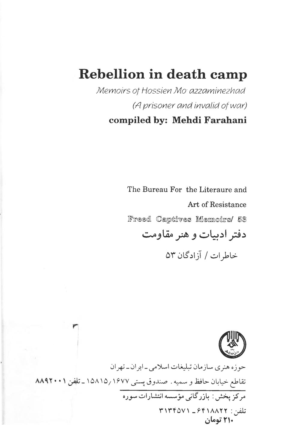 🔖 book_keywords : دانلود فایل pdf شورش در اردوگاه مرگ: خاطرات برادر جانباز و آزاده حسین معظمینژاد نوشته مهدی فراهانی