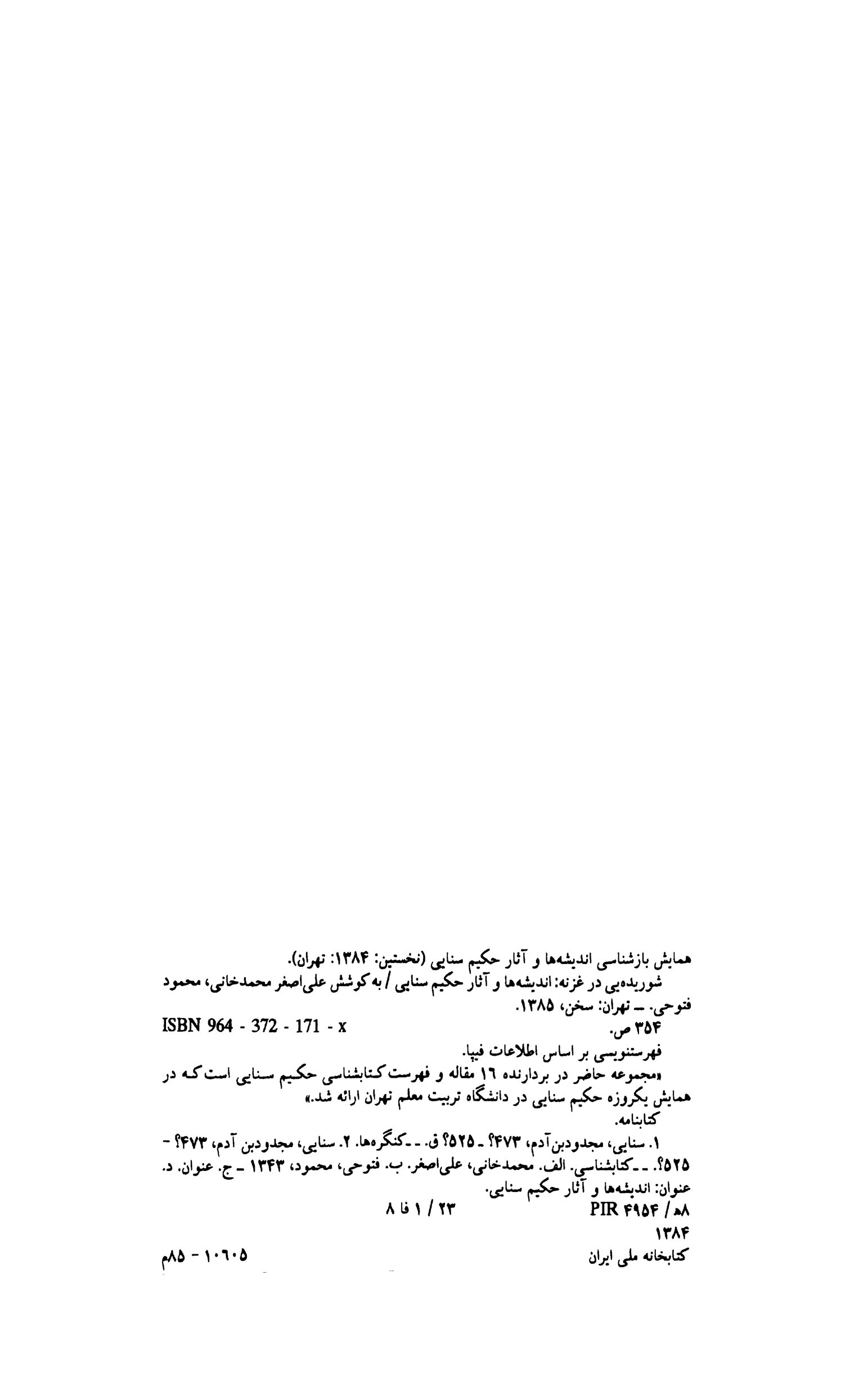 مجموعهی حاضر با هدف آشنایی مخاطبان با اندیشهها و آثار حکیم سنایی، مشتمل است بر مقالات و فهرست کتابشناسی حکیم سنایی که در همایش یکروزهی حکیم سنایی در دانشگاه تربیت معلم تهران عرضه گردید. مقالات عبارتاند از: