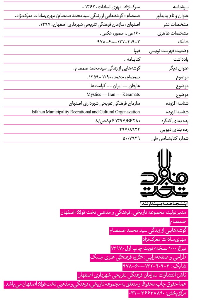 کتاب «صمصام: گوشه‌هایی از زندگی سید محمد صمصام» به قلم مهری سادات معرک‌نژاد در سال ۱۳۹۷ خورشیدی توسط سازمان فرهنگی و تفریحی شهرداری اصفهان منتشر شده است.